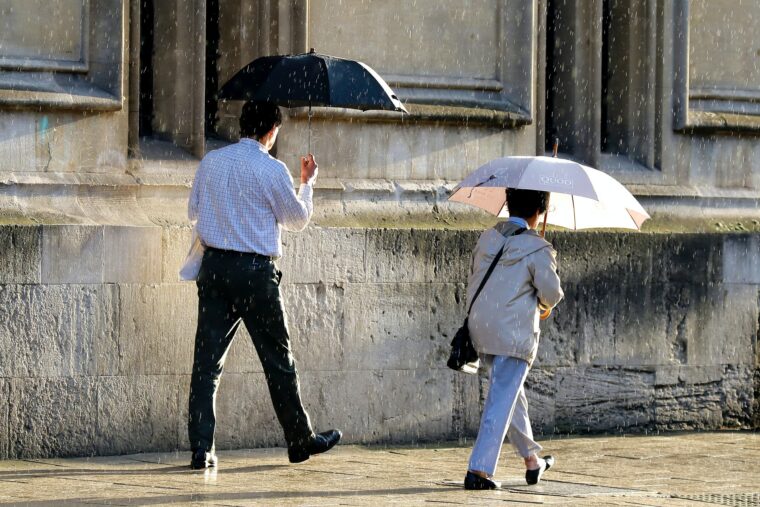 予期せぬ雨が降ってきて靴が濡れてしまった。